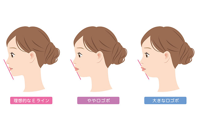 口ゴボとは、上下の唇が前方へ突出し、口元が盛り上がって見える状態をいいます。口ゴボの基準の一つに横顔で鼻先から顎先を結んだ「Eライン」があり、Eラインよりも口元が大きく前にはみ出ていることが多いです。また機能面では、口唇が閉じにくく、見た目のコンプレックスだけでなく、むし歯・歯周病・ドライマウス・発音障害など機能面のトラブルを引き起こすこともあります。